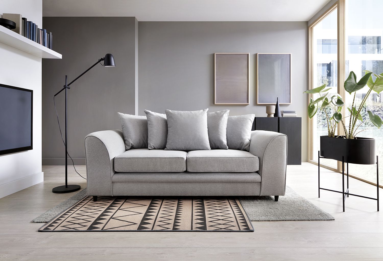 The perfect way to add comfort and opulence into your home, at an incredible price. This Darcy 3 seater adopts a modern design with its scatter back cushions and angular arms. Enjoy excellent comfort offered by generously filled fibre seats and backs that stand the test of time, without flattening out with everyday use.